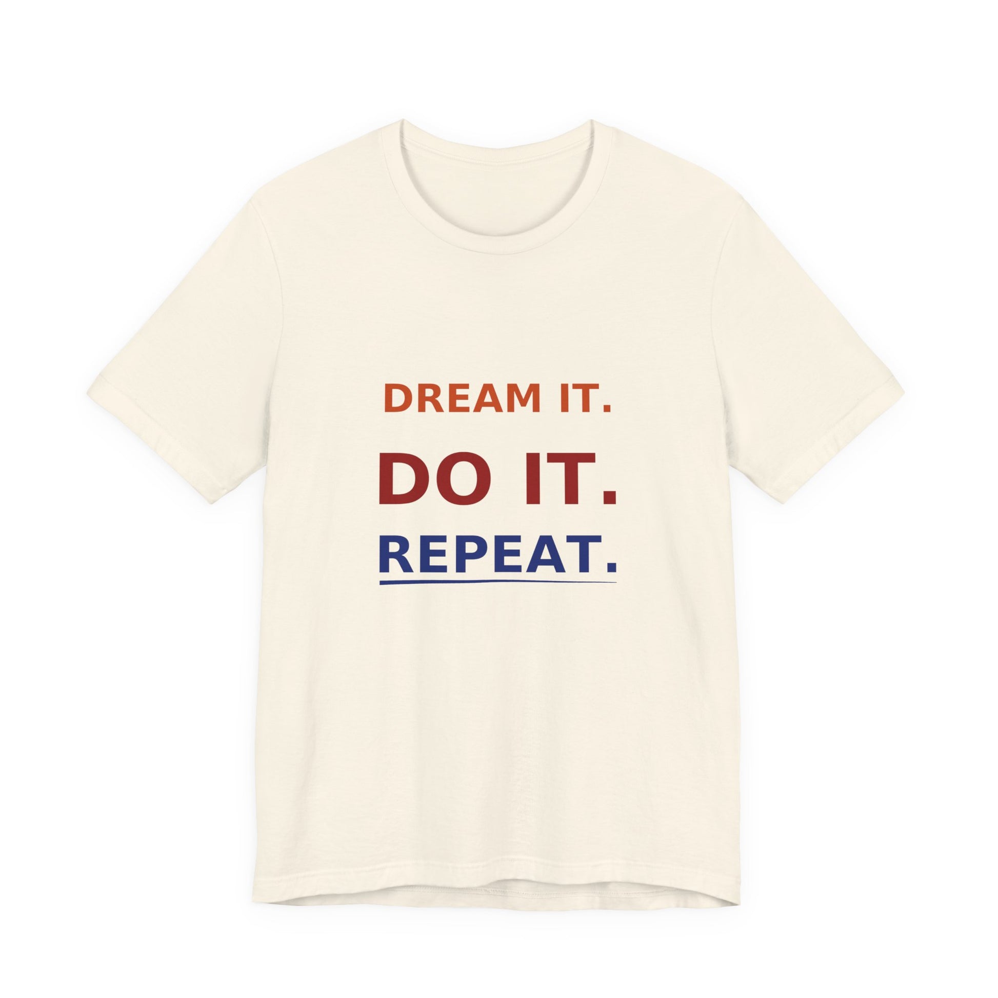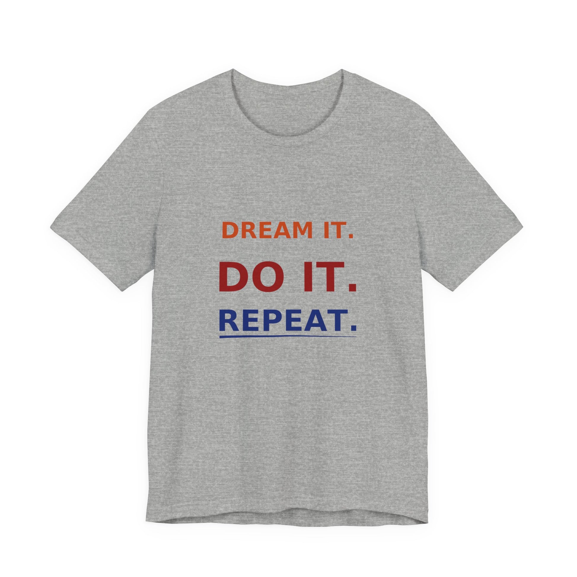 Stay motivated and keep your goals on repeat with our Dream It. Do It. Repeat. tee. Designed for dream chasers, hustlers, and go-getters, this shirt is a daily reminder to stay focused and unstoppable.