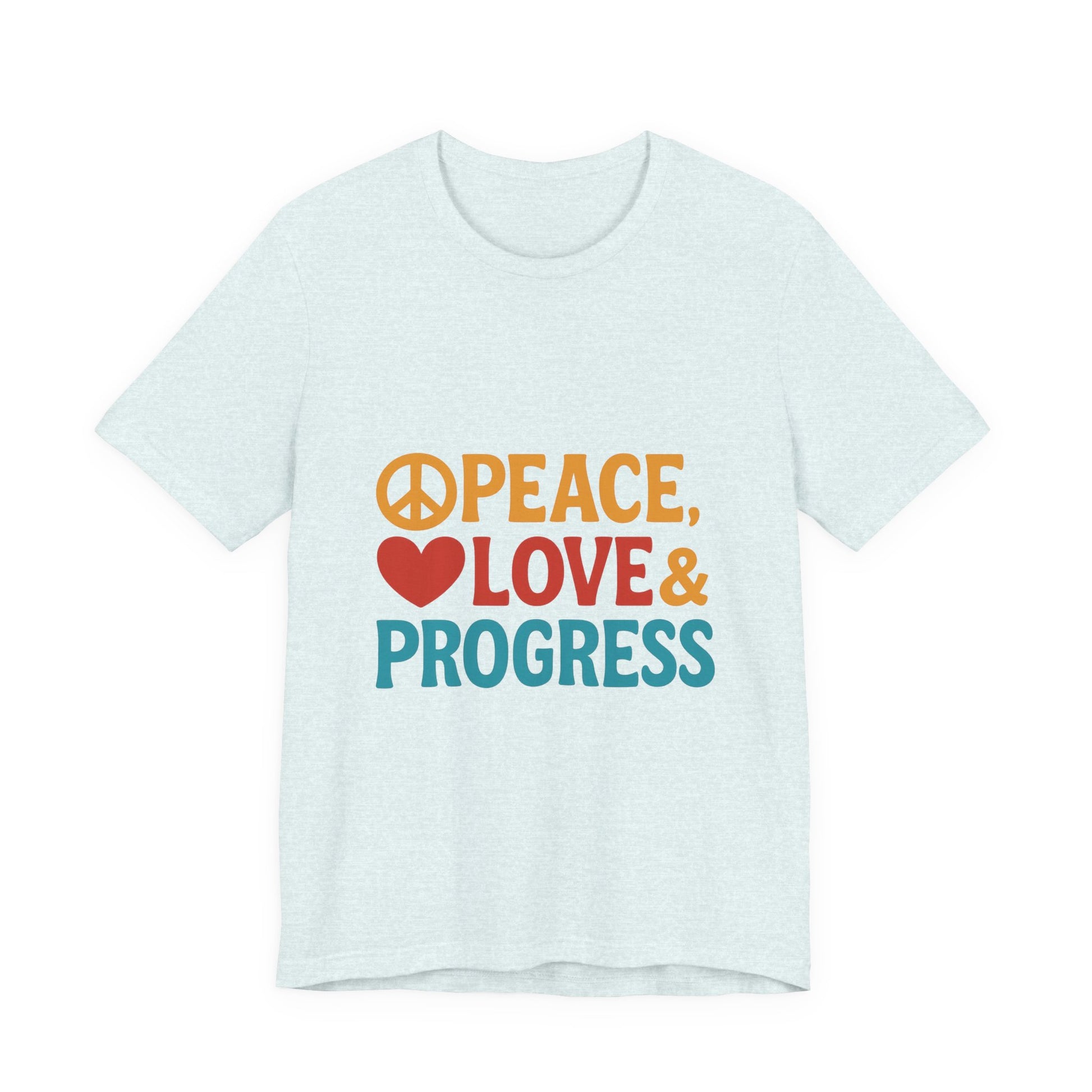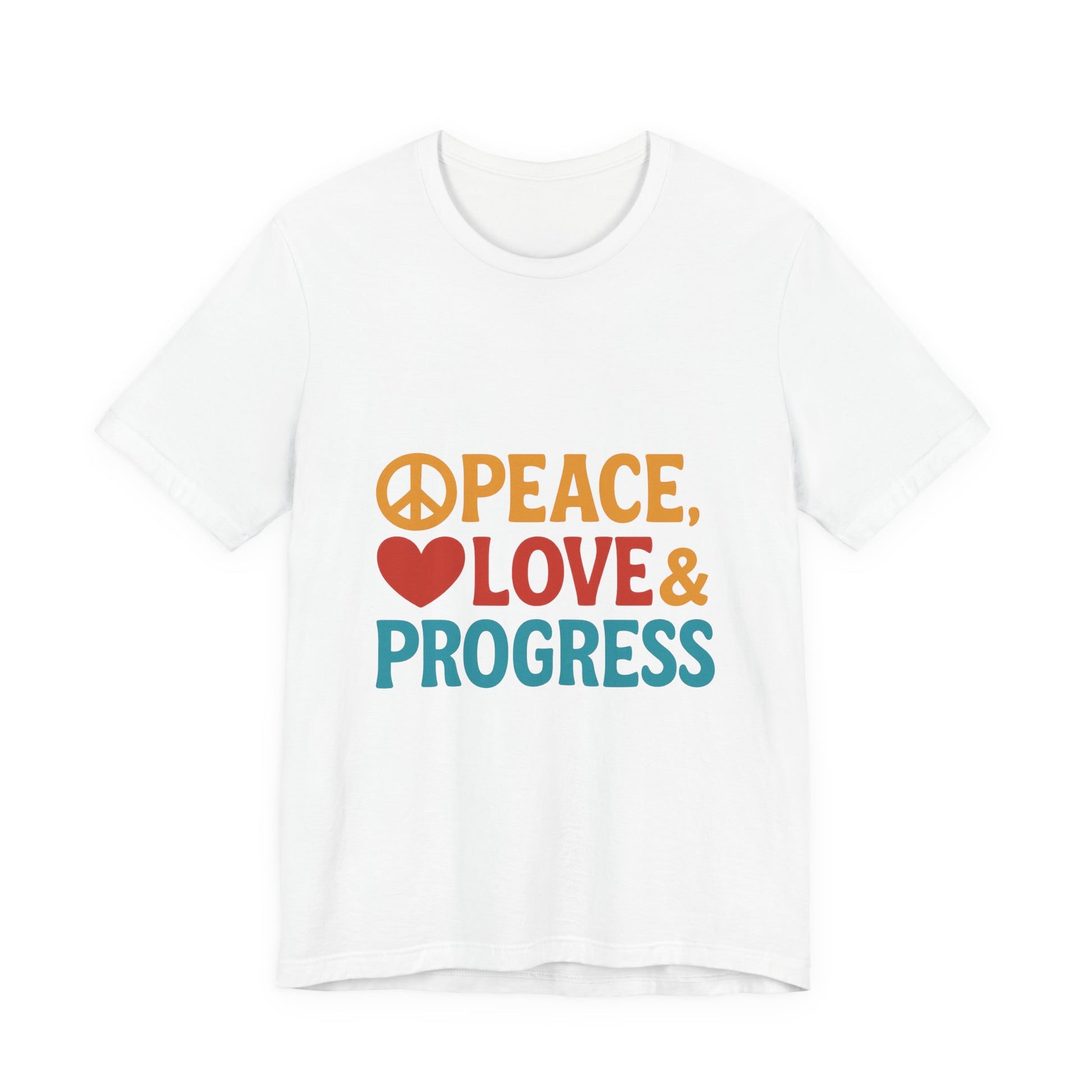 Peace, Love & Progress – Retro-Inspired Unisex Tee